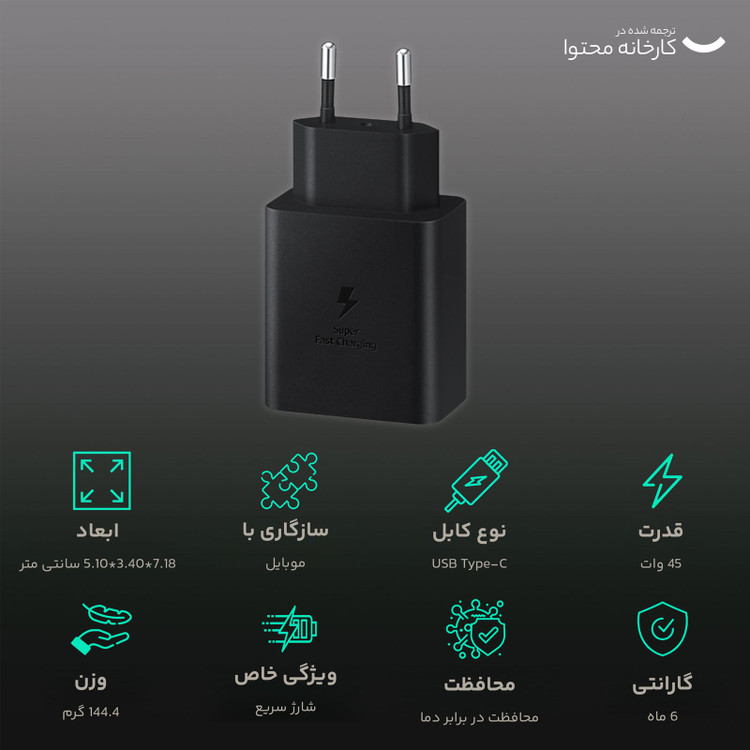 شارژر سامسونگ 45 وات سه پین با کابل اصل