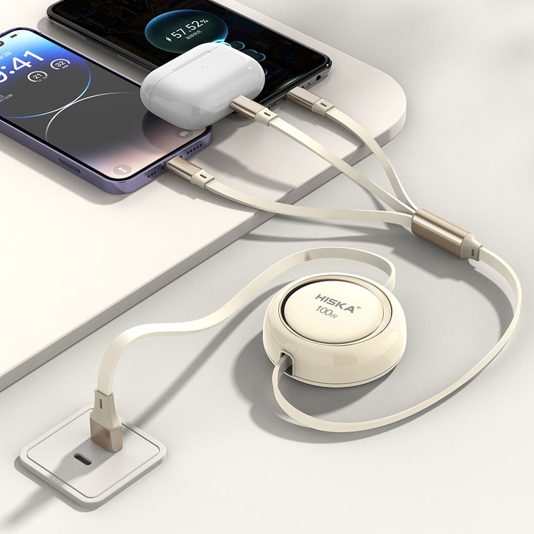 کابل 3 سر فست شارژ Hiska LX-34 5.3A 100W 1.2m