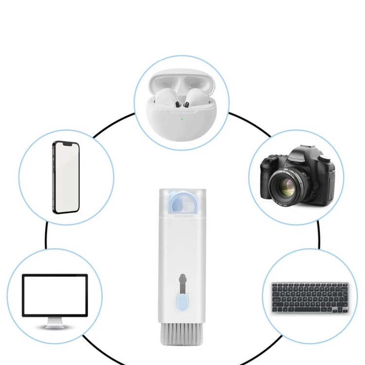 دستگاه تمیز کننده چند کاره 7 در 1 مناسب برای تمیز کردن کیبورد کامپیوتر و لپ تاپ، اسپیکر، هدفن، برداشتن کیلید های کیبورد های گیمینک برای تمیز کردن، تمیز کردن صفحه گوشی، داخل کیس های ایرپاد و.... این تمیزکننده دارای مخزن اسپری داخل کیت می باشد.